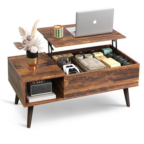 Vendita calda rustico marrone e nero ascensore tavolo da caffè con ripiano di stoccaggio e scomparti nascosti per soggiorno